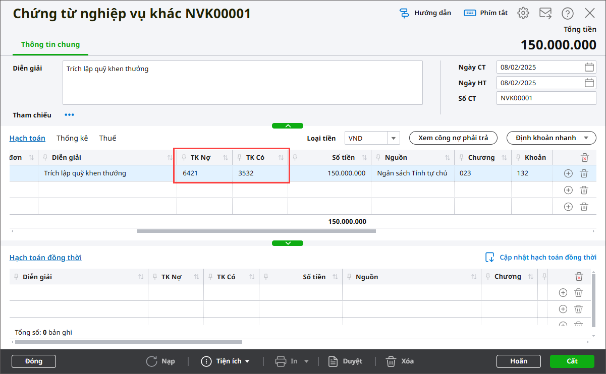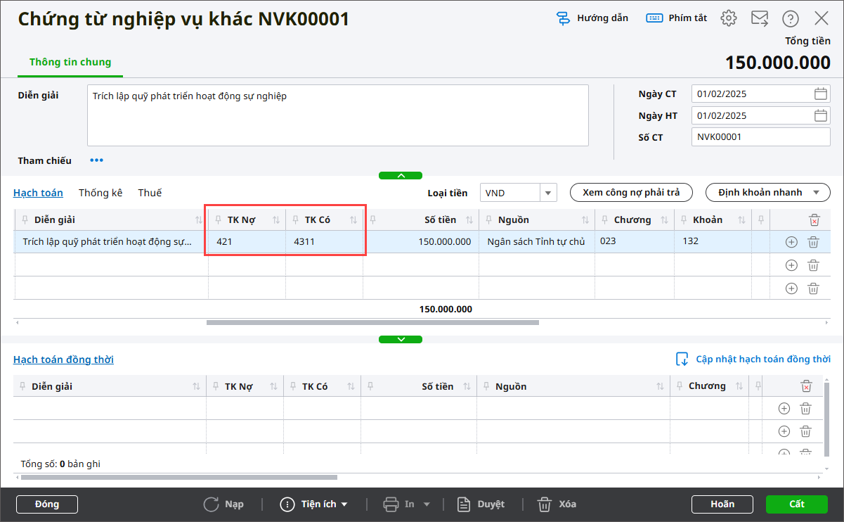 Vào phân hệTổng hợp\Chứng từ nghiệp vụ khác.