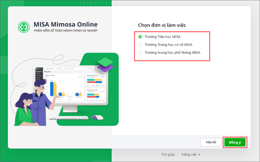 Bước 2: Tích chọn vào đơn vị cần làm việc.