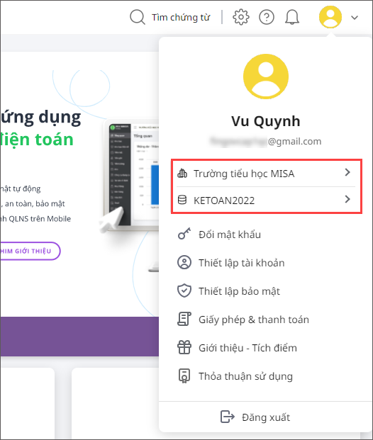Bước 2: Nhấn vào tên đơn vị hoặc tên dữ liệu kế toán.