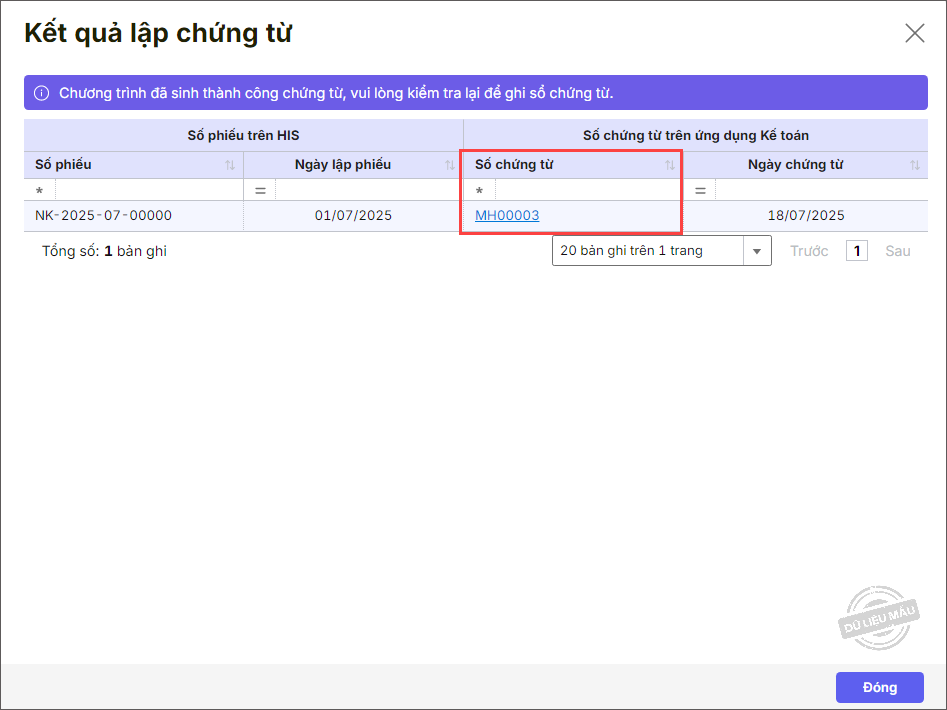 6. Nhấn vào Số chứng từ tại phần Kết quả lập chứng từ để xem chi tiết.