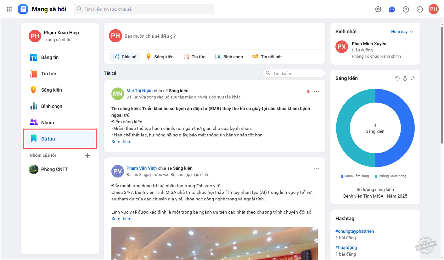 - Danh sách bài viết đã lưu sẽ được quản lý tại phân hệ Đã lưu.