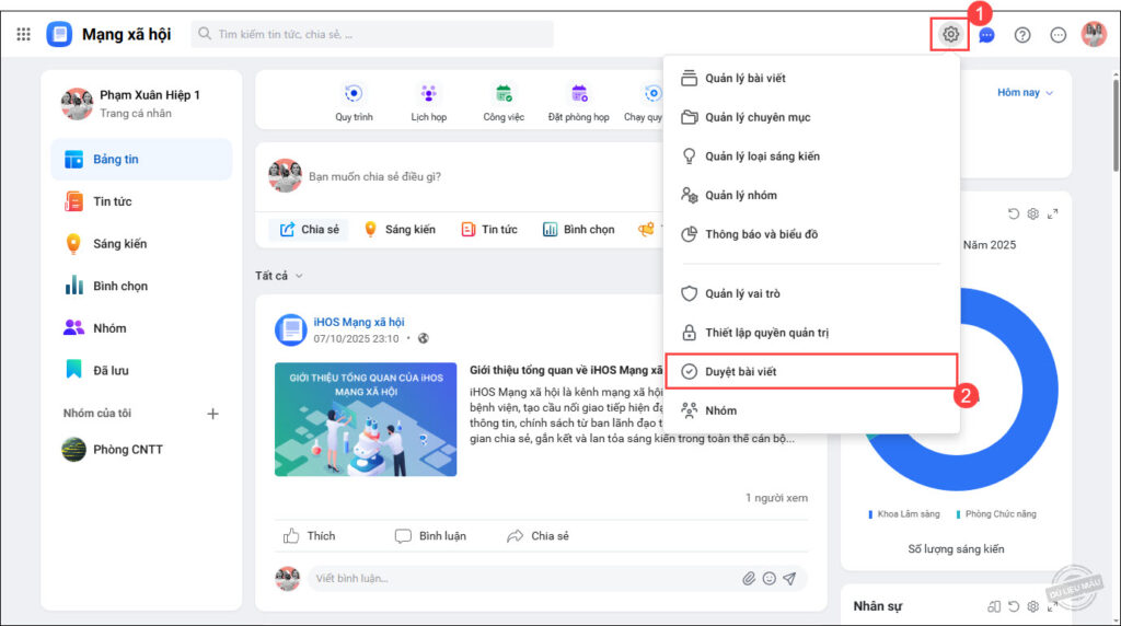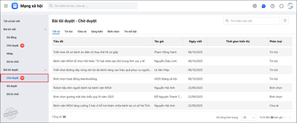 3. Phê duyệt bài viết trên iHOS Mạng xã hội