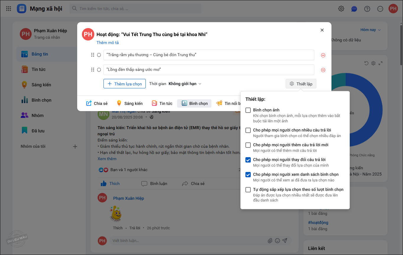Bài viết hướng dẫn tạo cuộc bình chọn trên trang iHOS Mạng xã hội để khảo sát nhanh ý kiến của CBNV trong đơn vị và thu được kết quả tổng hợp nhanh chóng.