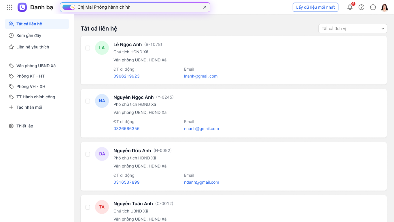 - Tìm kiếm thành viên của một phòng ban. Ví dụ: Danh sách chuyên viên phòng văn hóa
