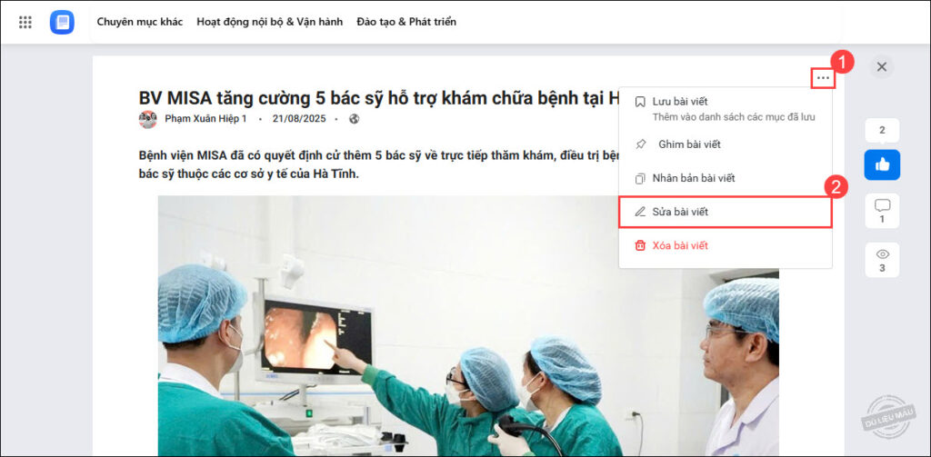 - Để chỉnh sửa nội dung bài viết, nhấn vào biểu tượng ⋯, chọn Sửa bài viết.