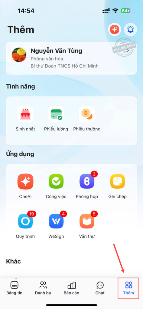 1. Trên ứng dụng MISA iGOV, chọn mục Thêm.