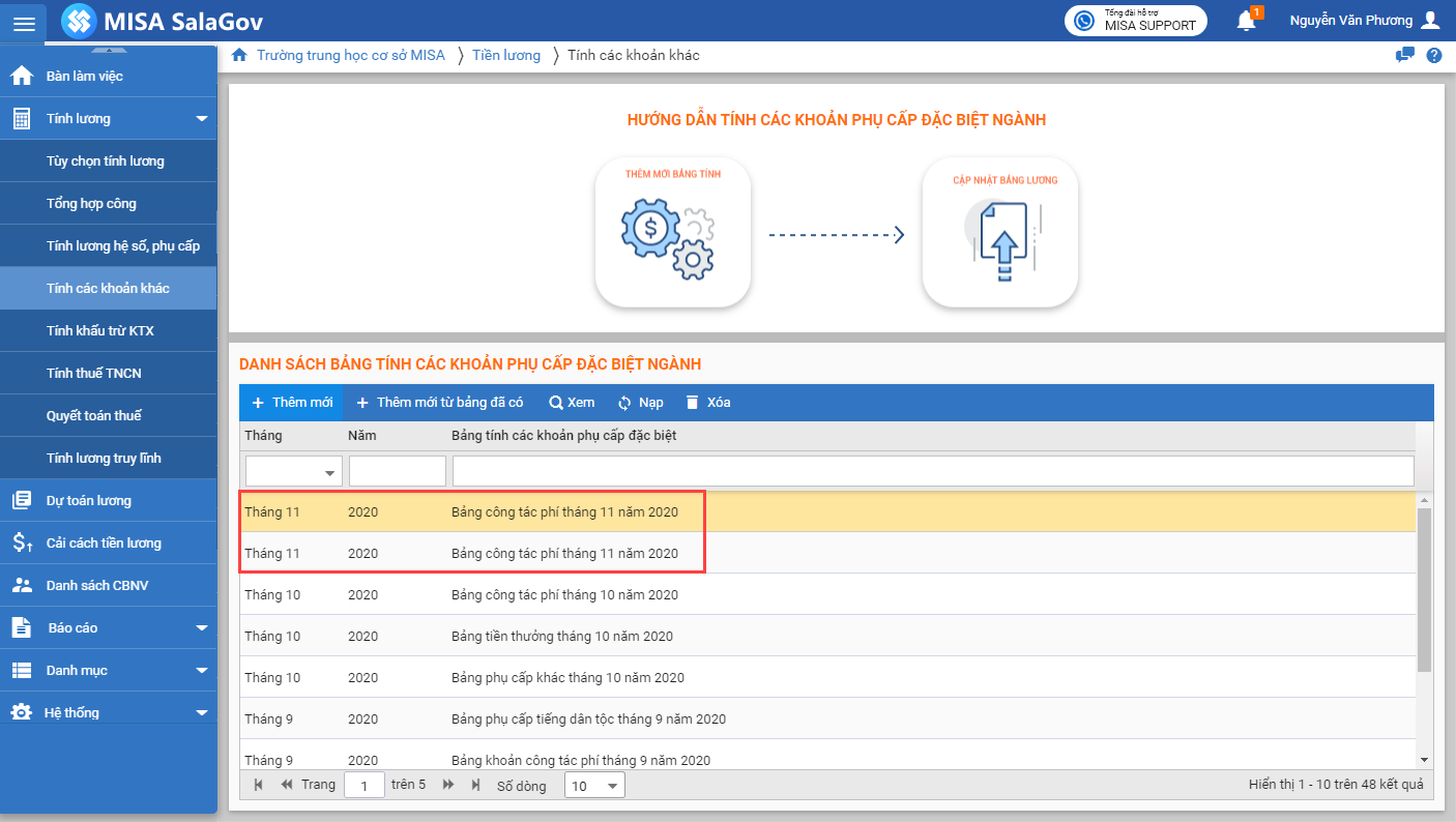 – Kể từ phiên bản R44, phần mềm cho phép tạo nhiều bảng cho cùng 1 khoản phụ cấp đặc biệt ngành trong cùng tháng.
