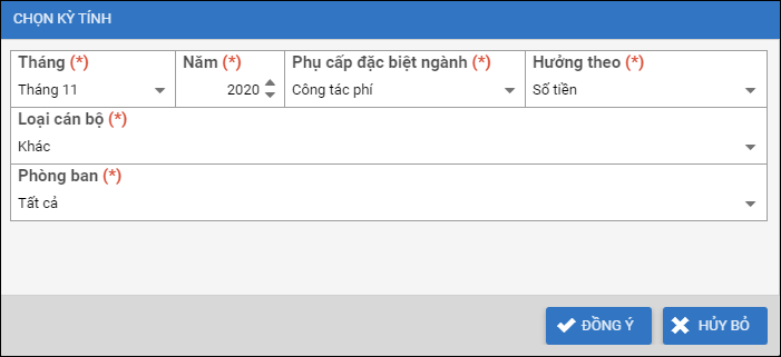 3. Phần mềm cho phép tạo nhiều bảng cho cùng 1 khoản phụ cấp đặc biệt ngành trong cùng tháng, có thể tạo theo loại cán bộ, phòng ban để giới hạn lại CBNV lựa chọn theo đúng thực tế.
