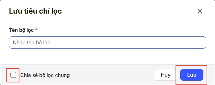 9. Tích chọn Chia sẻ bộ lọc chung nếu muốn.