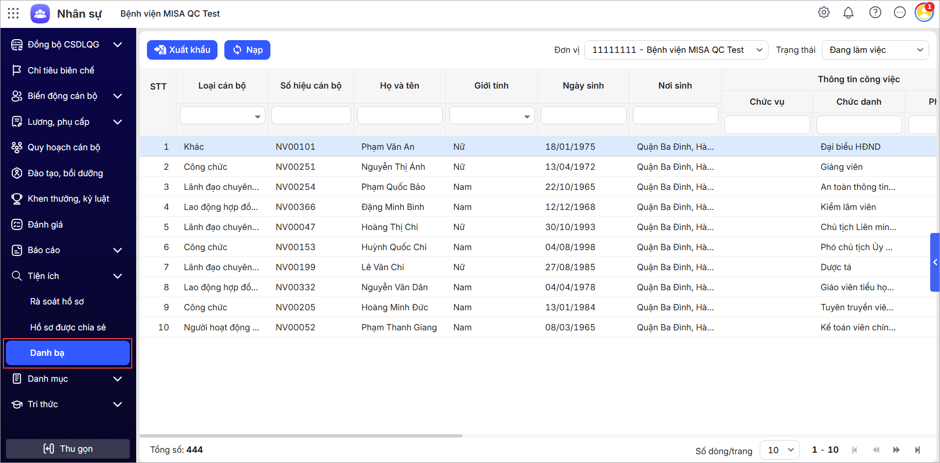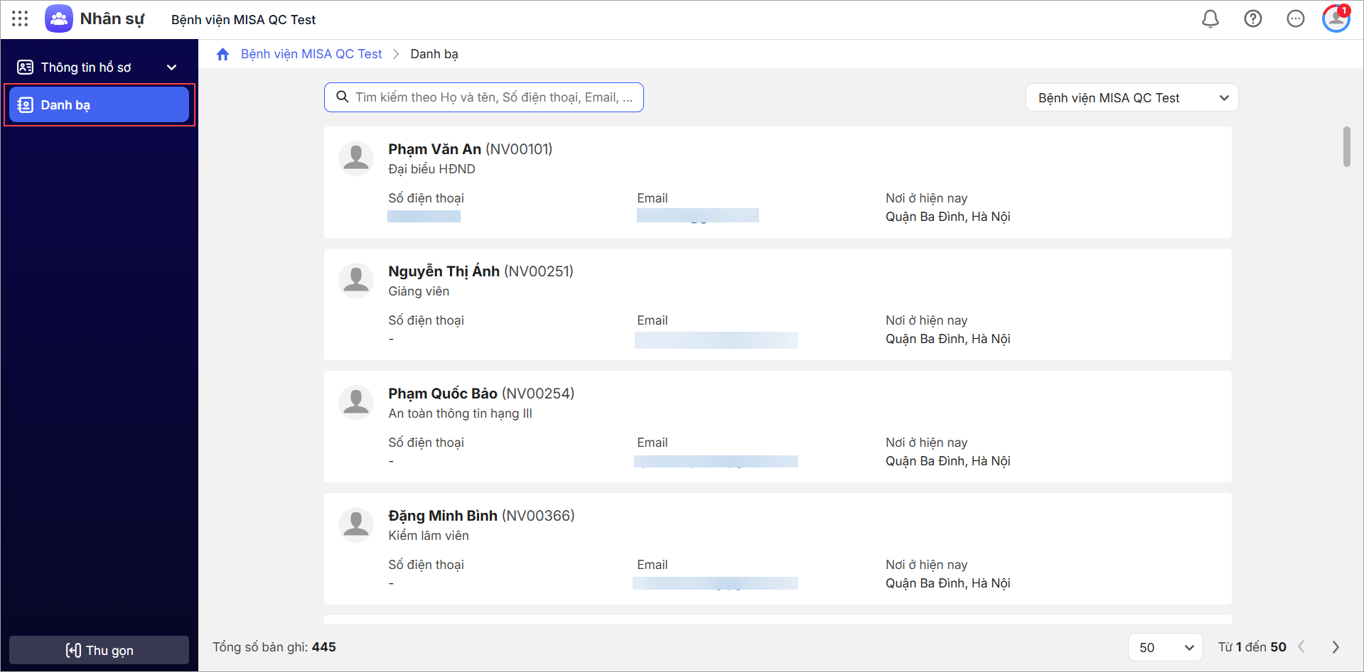 - Tại phần Danh bạ, CBNV có thể nhìn thấy tất cả các thông tin của CBNV khác trong đơn vị để có thể liên lạc khi cần.