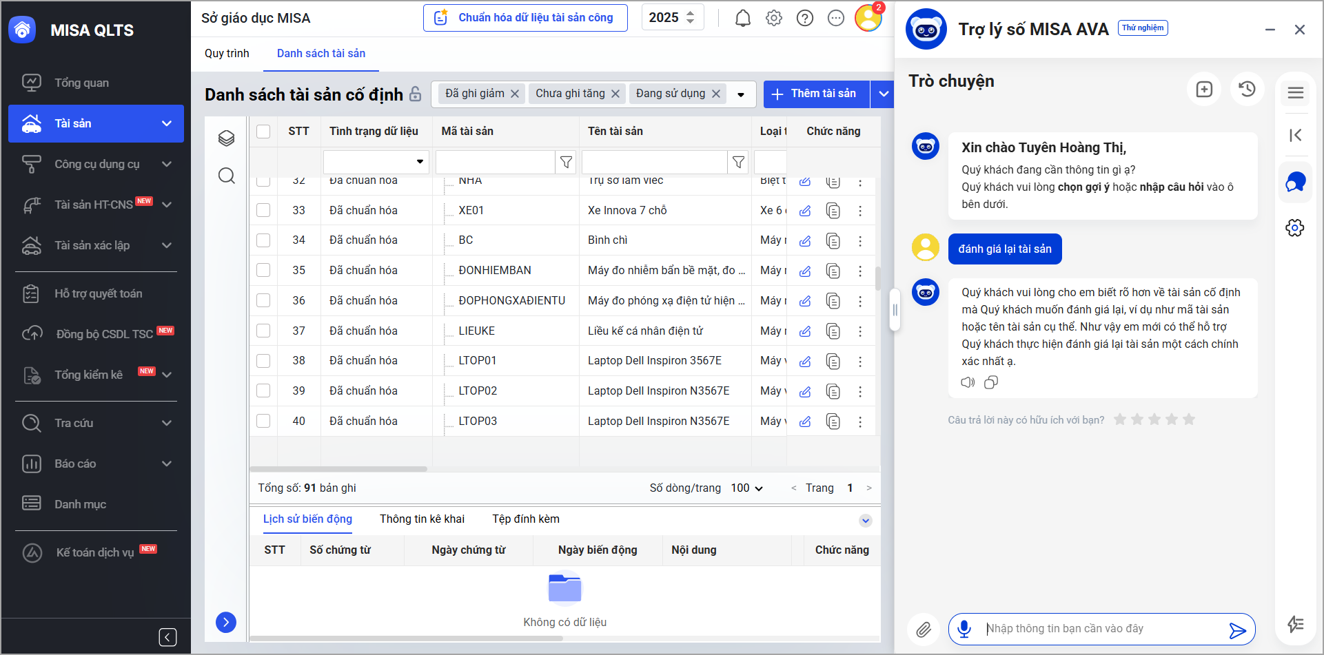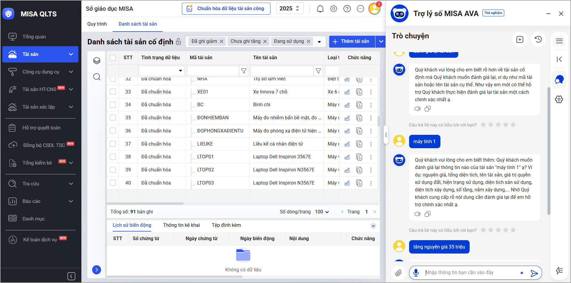 Khi có nhu cầu chỉnh sửa thông tin/đánh giá lại tài sản, anh/chị chỉ cần yêu cầu trợ lý số MISA AVA