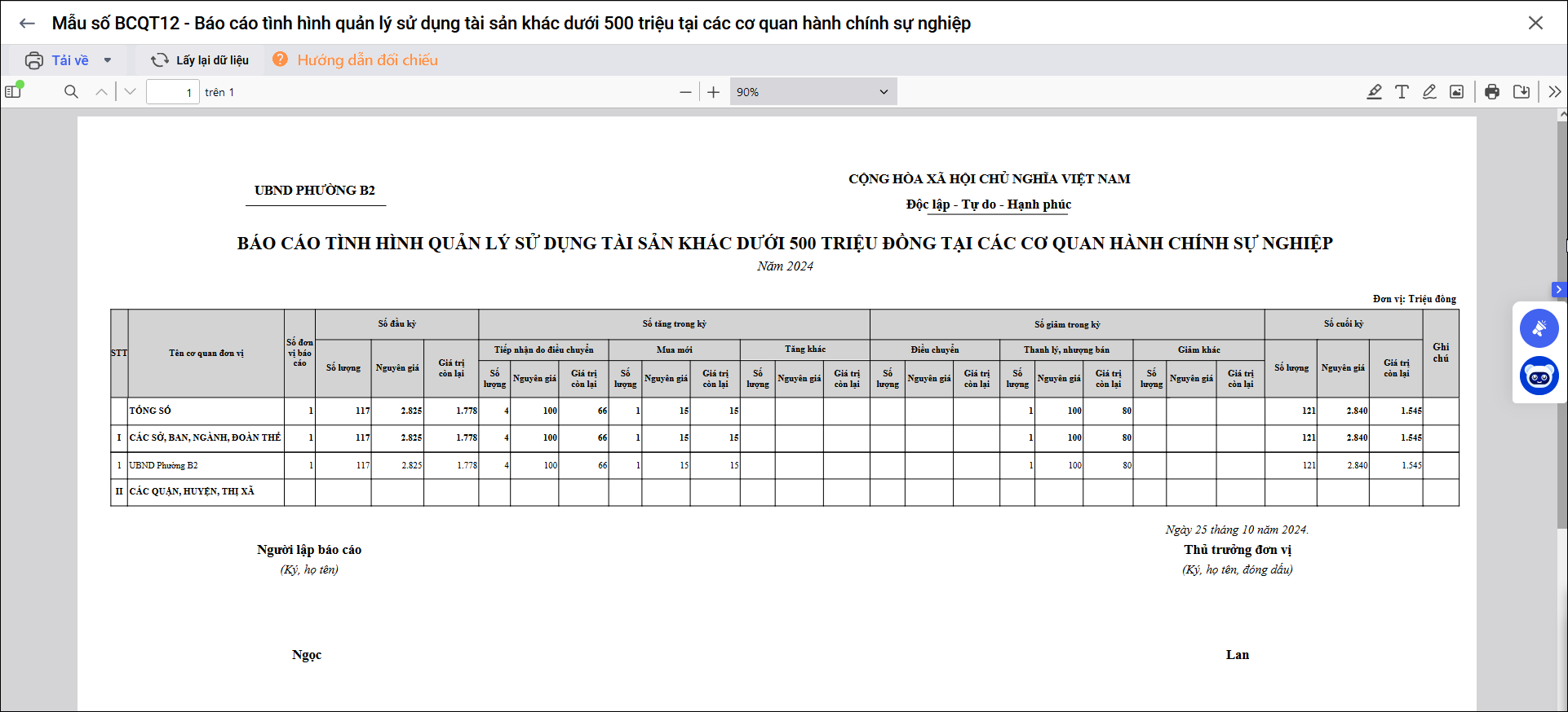 Bài viết này giúp anh/chị nắm được cập nhật cho phép in Báo cáo tình hình quản lý sử dụng tài sản khác dưới 500 triệu tại các cơ quan hành chính sự nghiệp trên phần mềm QLTS.