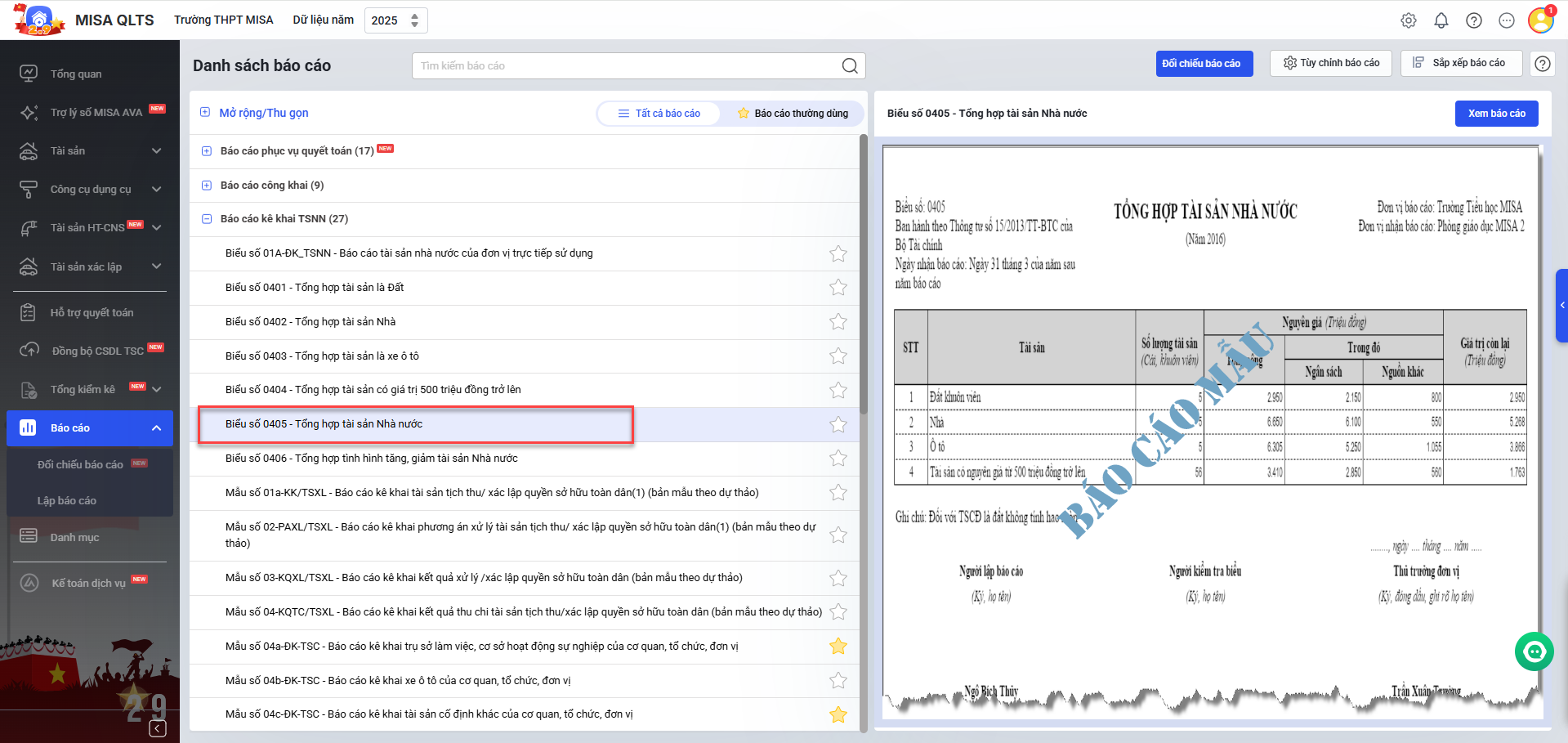 Bài viết giới thiệu tính năng mới giúp anh/chị in được Biểu số 0405 – Tổng hợp tài sản nhà nước.