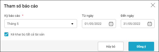 • Chọn Kỳ báo cáo: Lựa chọn kỳ cần xem (Ví dụ: Năm nay, Năm trước, Tự chọn…). Khi chọn kỳ, hệ thống sẽ tự động cập nhật Từ ngày và Đến ngày tương ứng.