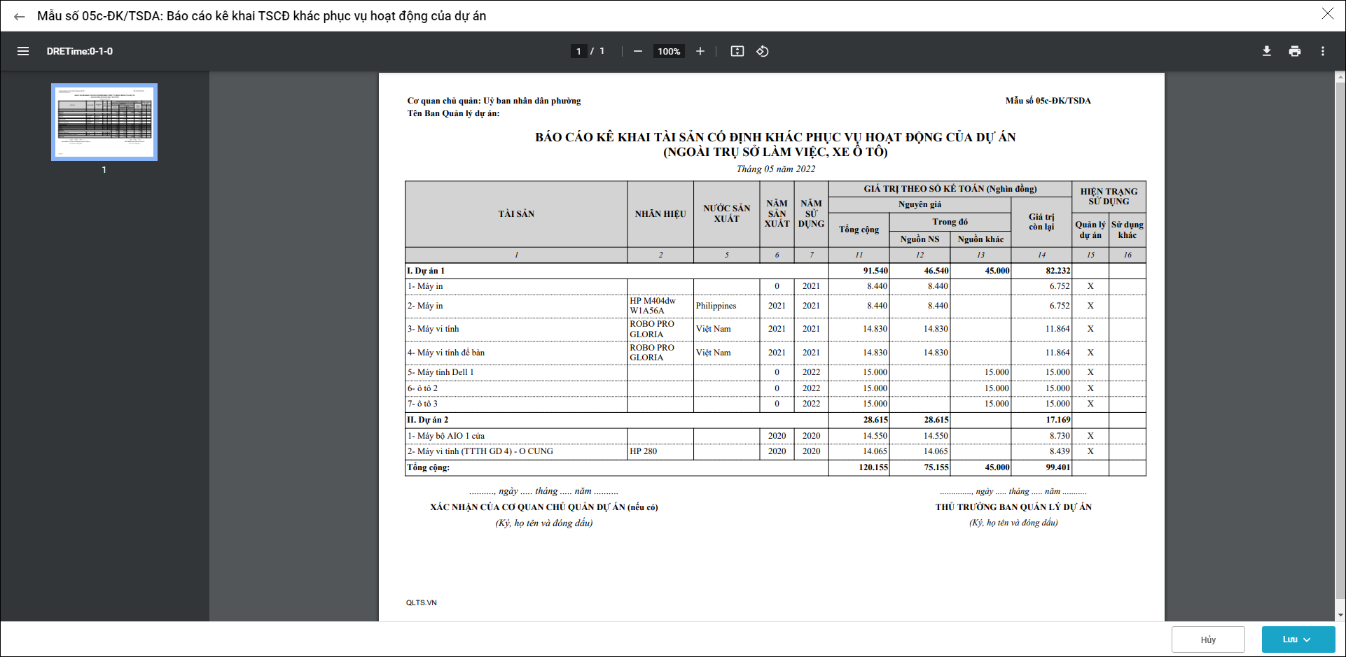 Bài viết này giúp anh/chị in được Mẫu số 05c-ĐK/TSDA: Báo cáo kê khai TSCĐ khác phục vụ hoạt động của dự án