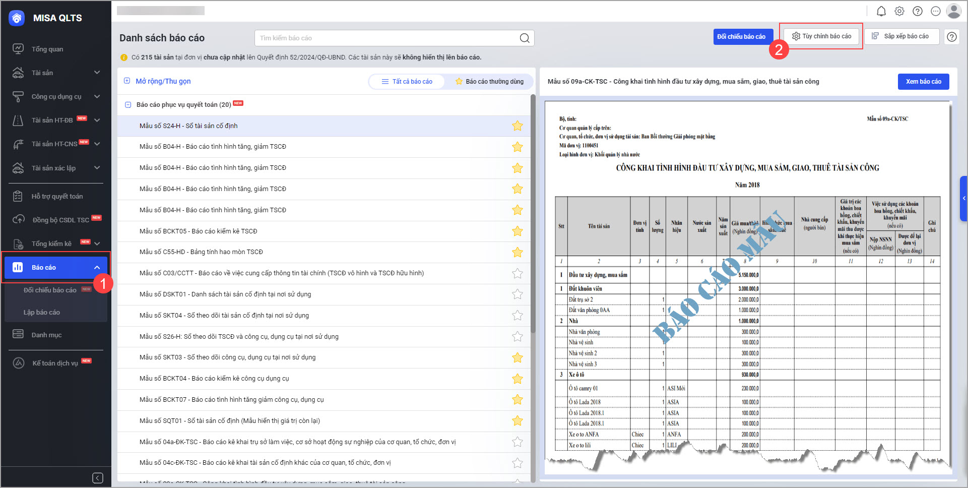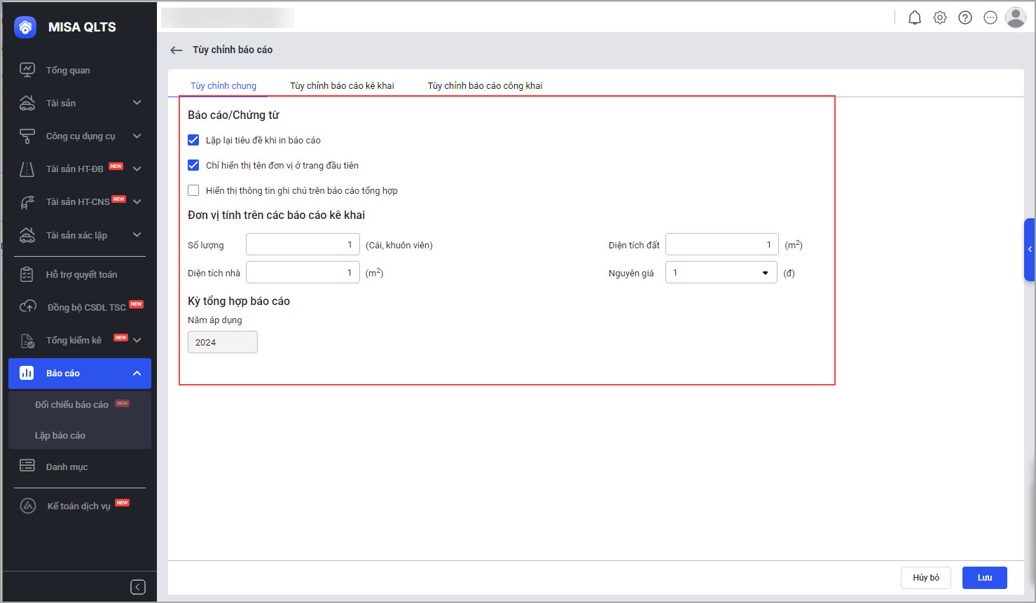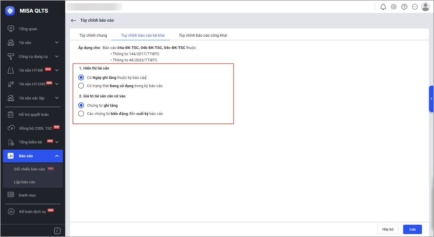 Bài viết này giúp anh/chị hiểu cách lựa chọn và tùy chỉnh tham số báo cáo kê khai tài sản trên MISA QLTS, đảm bảo báo cáo phù hợp với nhu cầu quản trị và yêu cầu của đơn vị chủ quản.