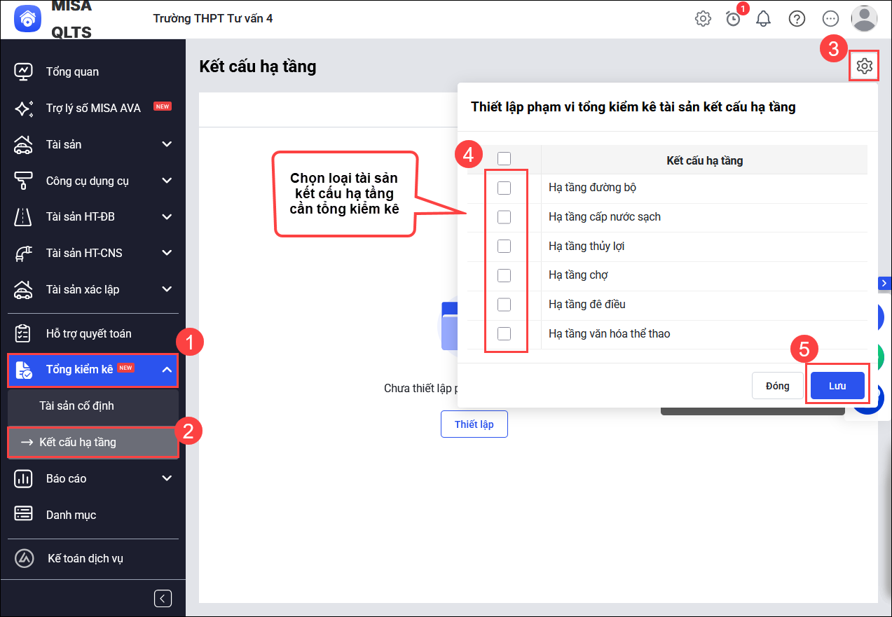 - Thiết lập loại tài sản kết cấu hạ tầng cần sử dụng