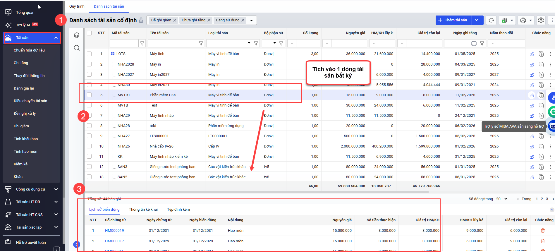 Sau khi thực hiện xong, tài sản sẽ được theo dõi đúng loại và phần mềm sẽ tính hao mòn chính xác theo quy định.