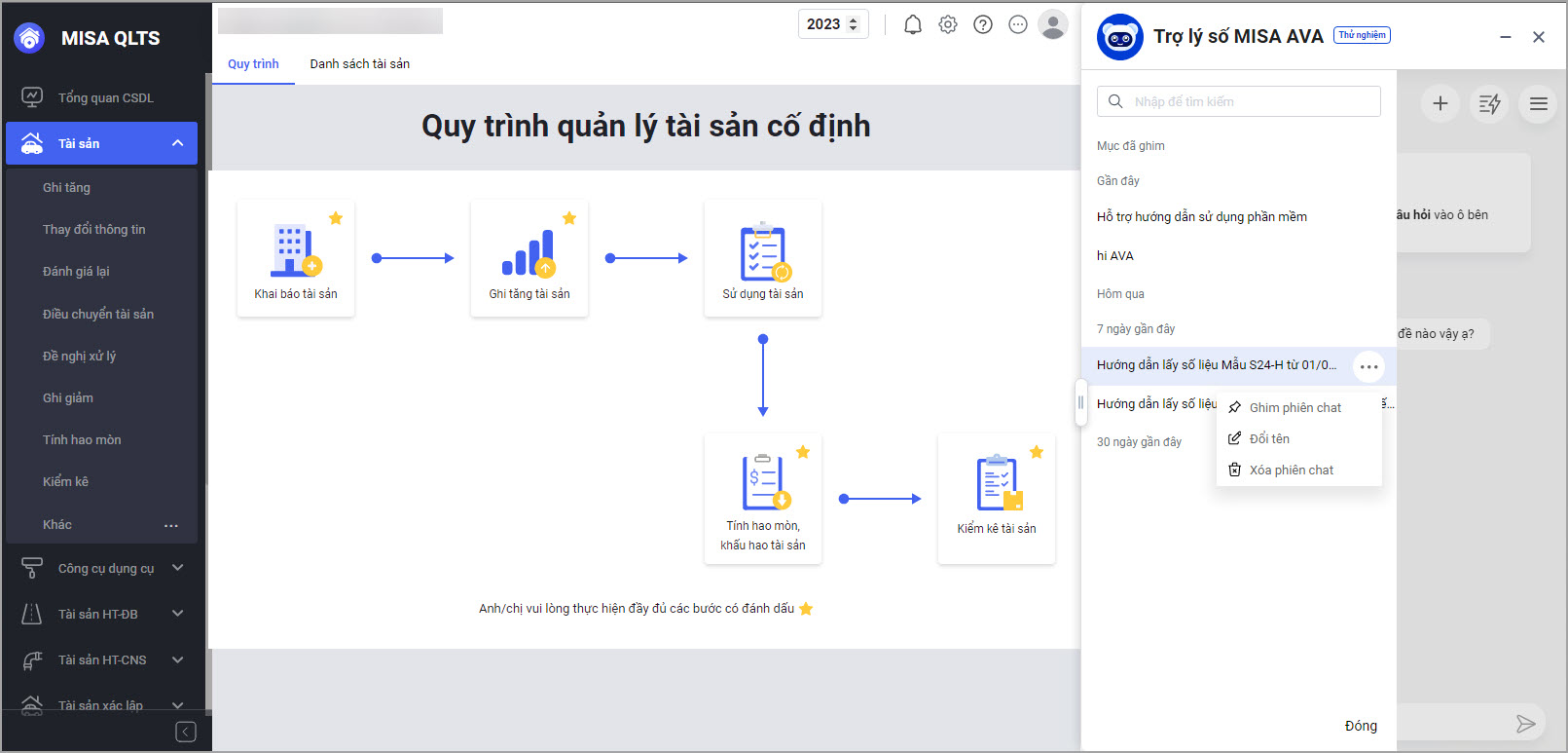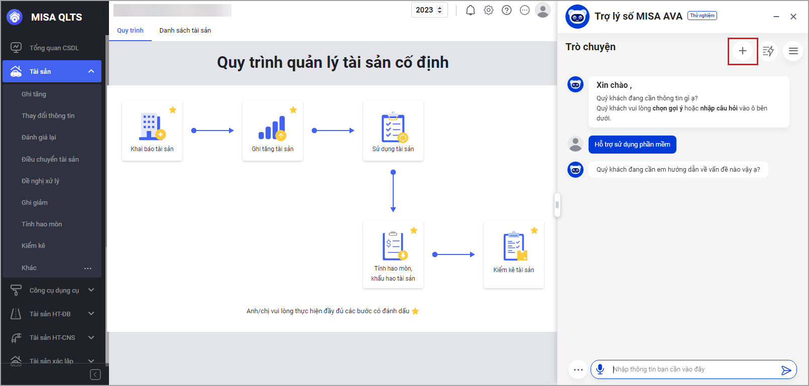 Khi tương tác với trợ lý số MISA AVA, nếu anh/chị có nhu cầu tạo phiên chat mới anh/chị thực hiện như sau: