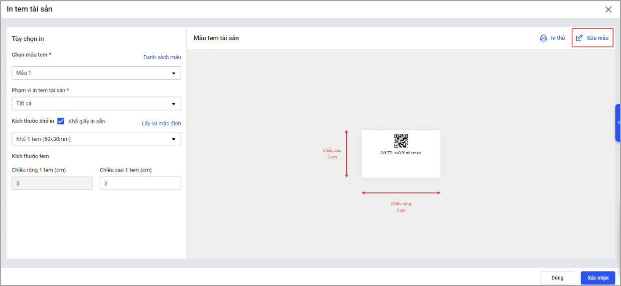 Với các nội dung như tên tài sản, bộ phận sử dụng,… nếu có số lượng chữ dài sẽ bị mất chữ khiến người dùng không xem hết được nội dung trên nhãn kiểm kê dẫn đến việc có thể xác định sai tài sản. Nếu cần chỉnh thêm chiều rộng thì có thể không đáp ứng được kích cỡ nhãn kiểm kê mà người dùng muốn in ra.