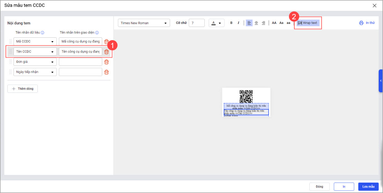Bài viết này hướng dẫn anh/chị theo dõi đầy đủ thông tin tên tài sản trên nhãn kiểm kê, giúp xác định đúng tài sản trong quá trình kiểm kê, thông qua việc sử dụng tiện ích Wrap Text tại chức năng sửa mẫu.
