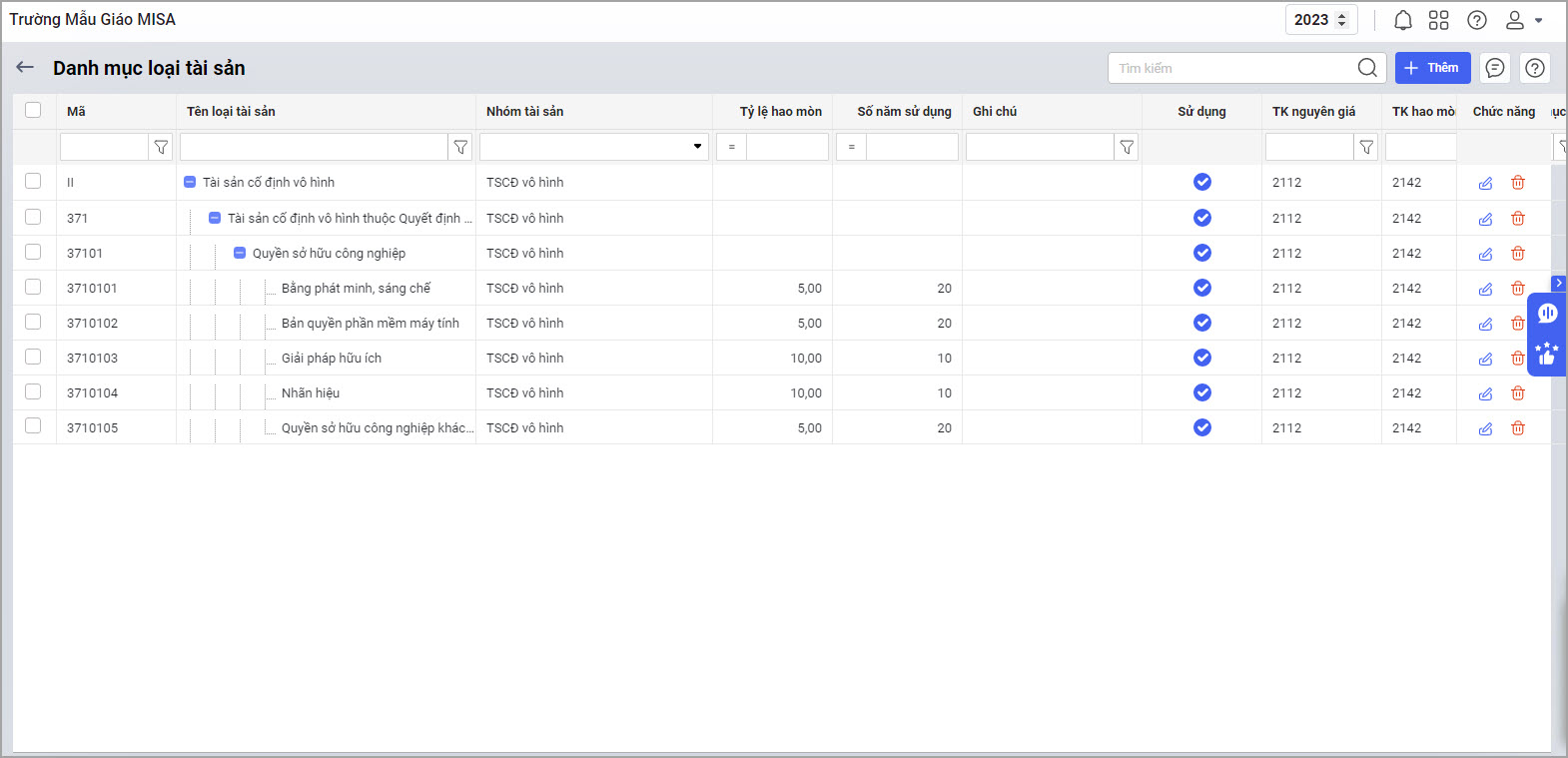 - Phần mềm đáp ứng Cập nhật theo Thông tư 23/2023/TT-BTC cho các đơn vị thuộc Đài tiếng nói Việt Nam, chưa đáp ứng chi tiết thời gian sử dụng, tỷ lệ hao mòn % của TSCĐ vô hình theo quyết định số 1502/QĐ-TNVN