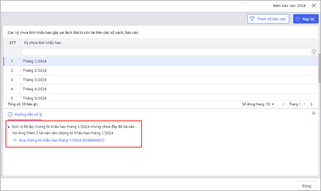 Mục đích: Bài viết giúp anh/chị dễ dàng phát hiện các kỳ đã tính khấu hao nhưng thiếu tài sản, từ đó theo dõi và xử lý kịp thời theo đúng quy định.