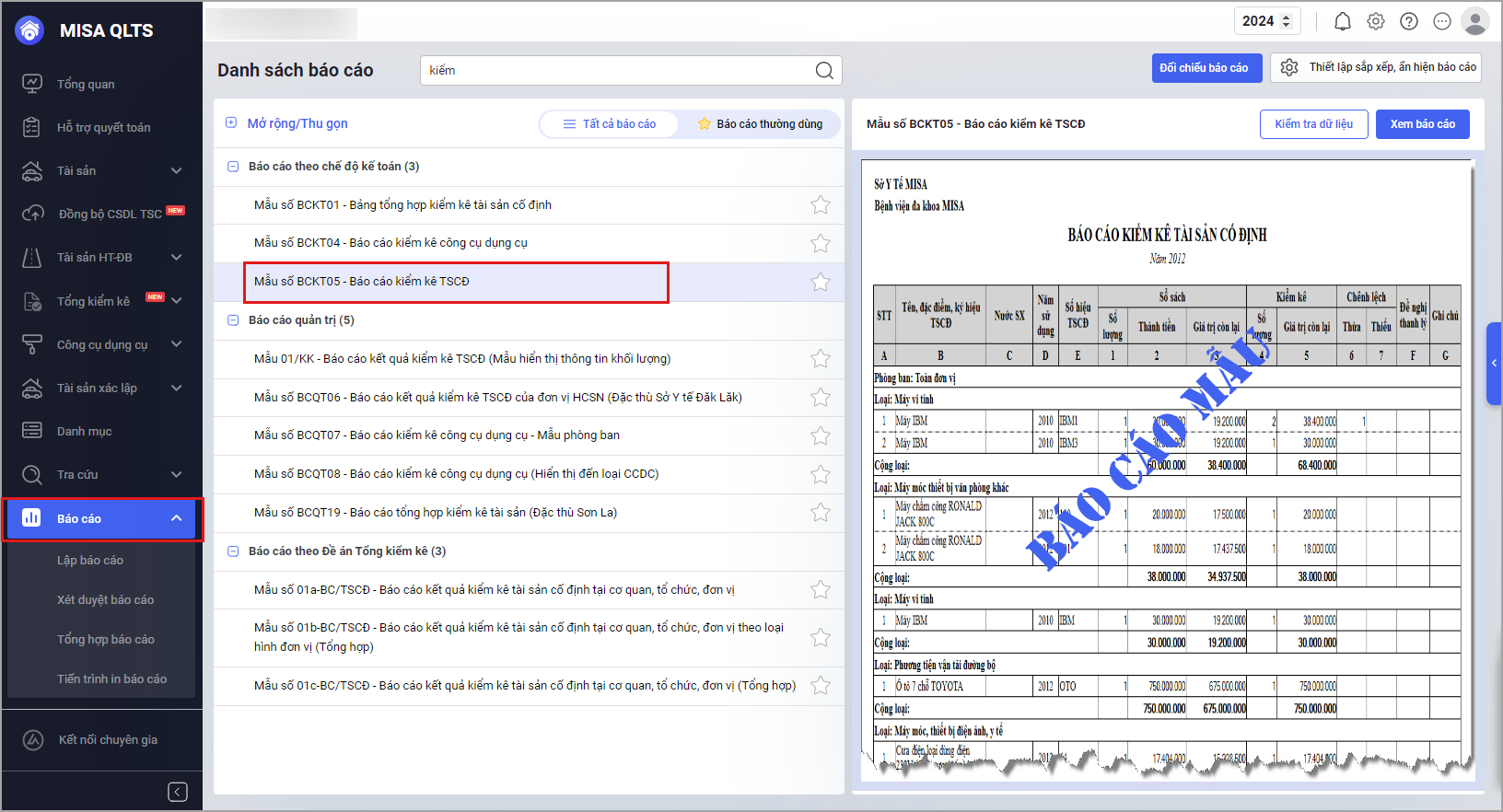 - Tại menu Báo cáo\Báo cáo kiểm kê TSCĐ: