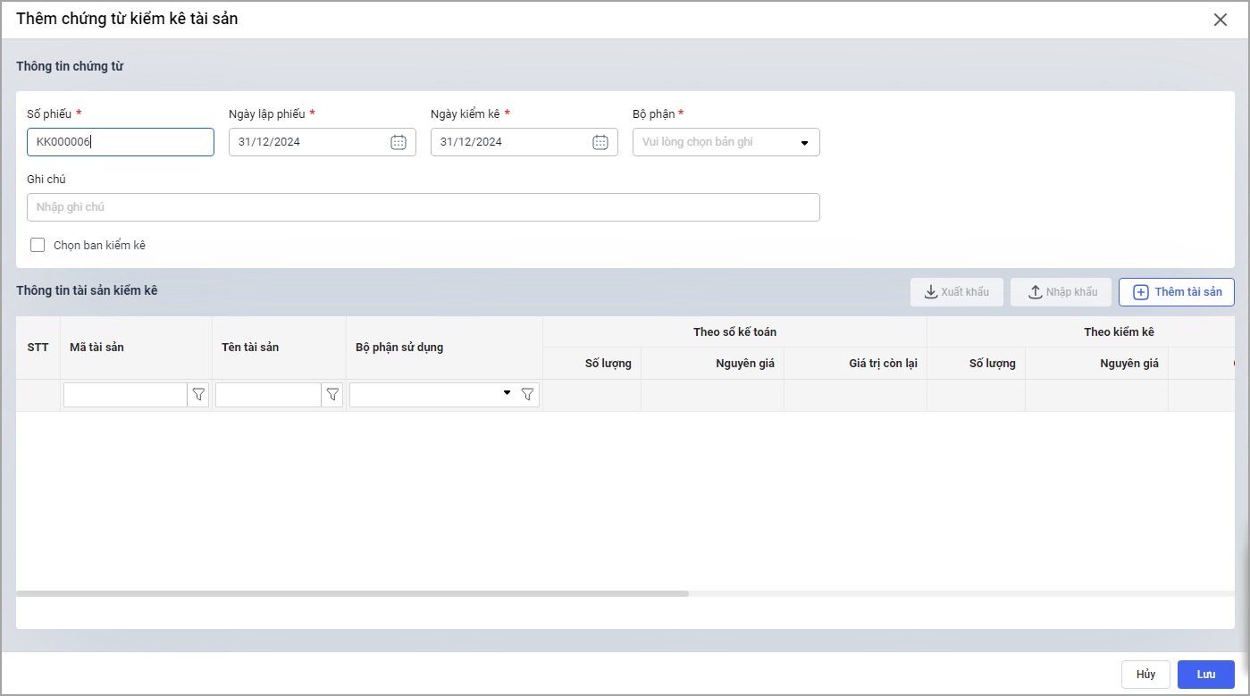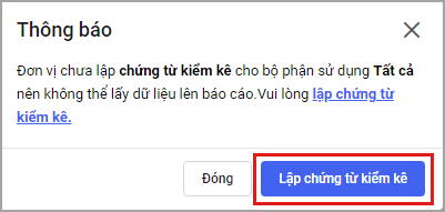 - Anh/chị chọn Lập chứng từ kiểm kê sau đó mới tiến hành in báo cáo.