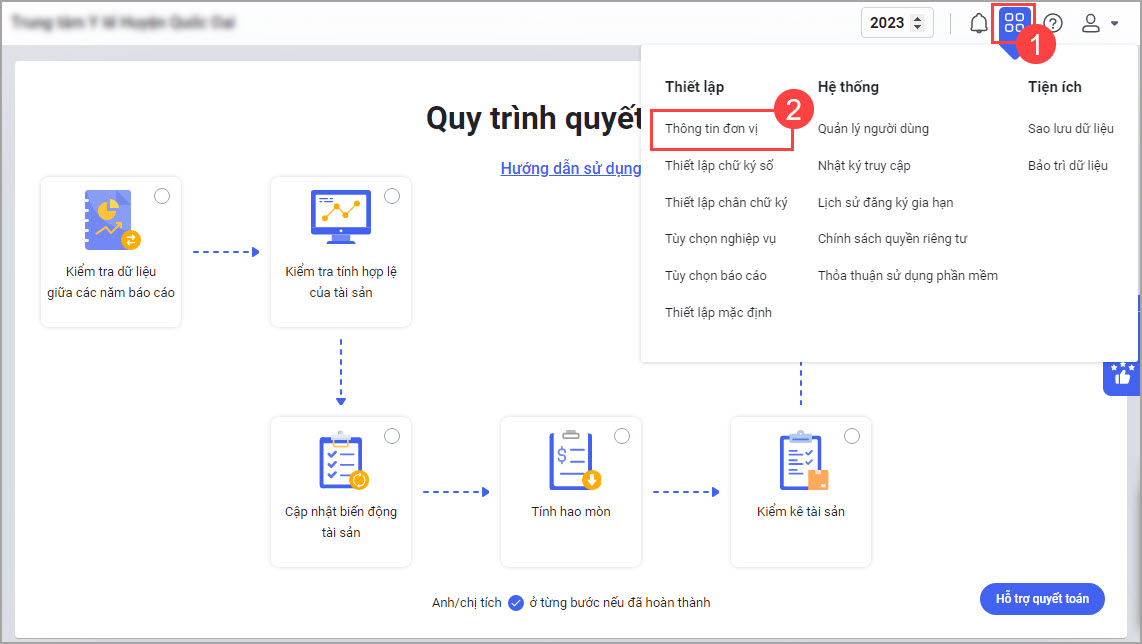 2. Cán bộ QLTS mong muốn thay đổi thông tin đơn vị chủ quản khi phát sinh thay đổi cơ cấu tổ chức để nộp báo cáo theo đúng thực tế phát sinh
