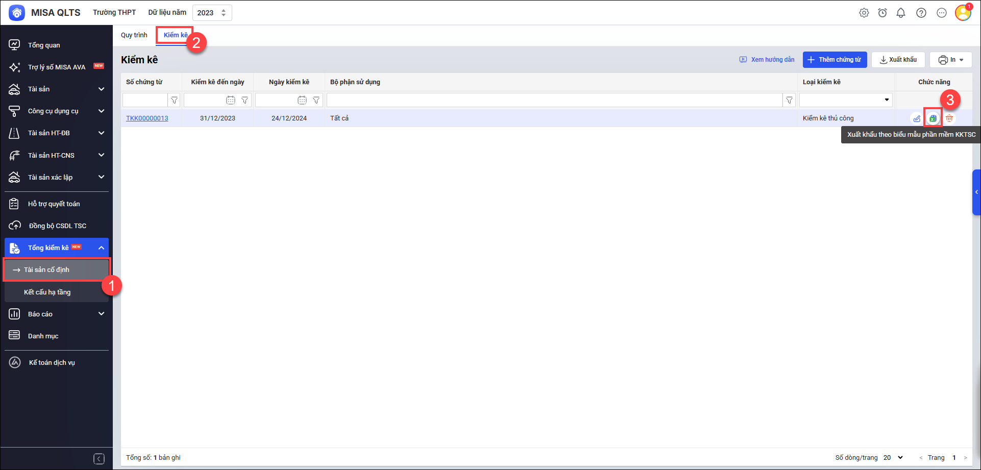 Bài viết hướng dẫn cán bộ QLTS thực hiện xuất khẩu dữ liệu tổng kiểm kê trên phần mềm MISA QLTS và đưa lên phần mềm Bộ Tài chính.