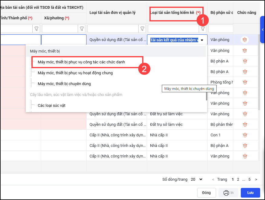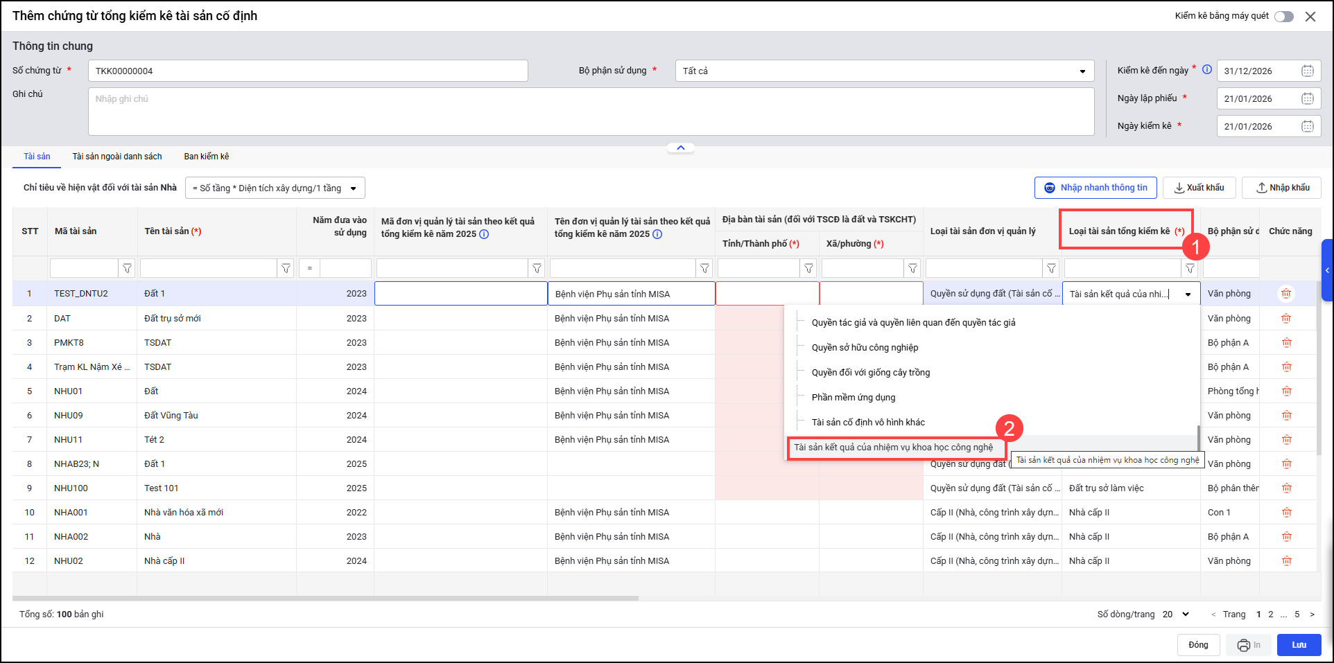 - Tại mục Tài sản và Tài sản ngoài danh sách, Phần mềm bổ sung loại tài sản Tổng kiểm kê theo mẫu mới nhất trên phần mềm Tổng kiểm kê của Bộ Tài chính: