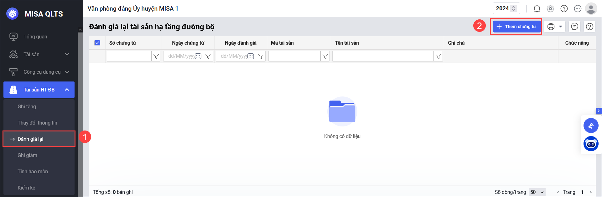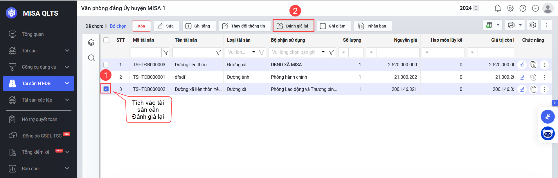 Nội dung bài viết gồm: Hướng dẫn quy trình đánh giá lại tài sản HT-ĐB trực tiếp tại menu tài sản hoặc qua menu Đánh giá lại.
