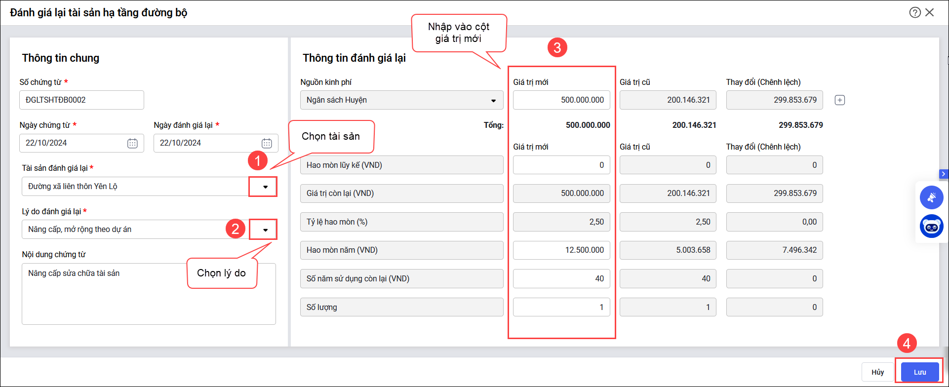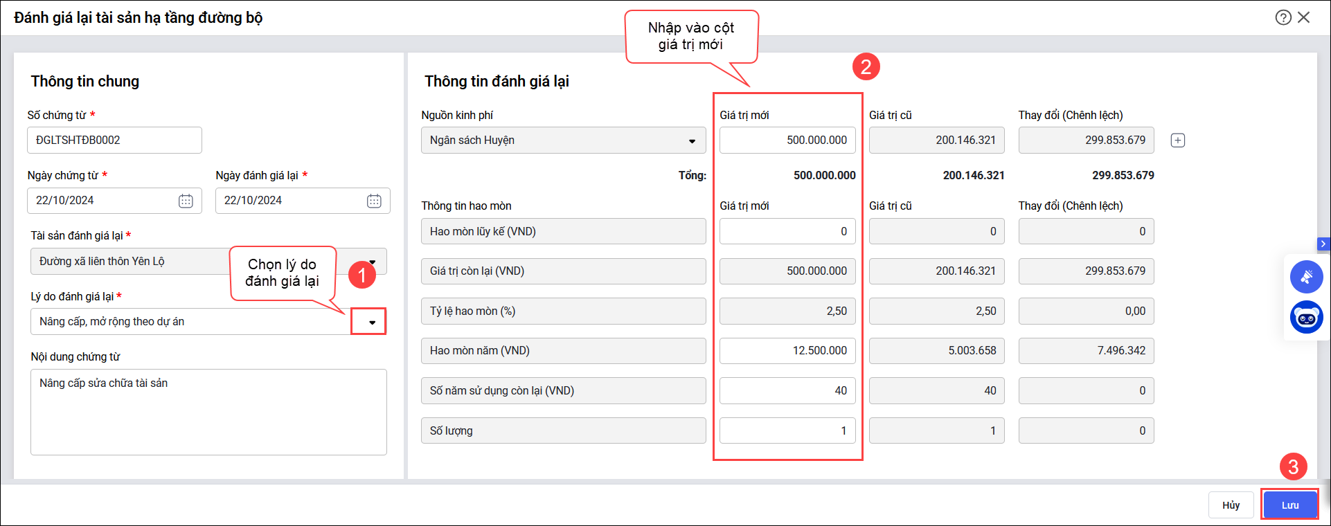 Bài viết này hướng dẫn anh/chị các bước thực hiện đánh giá lại tài sản hạ tầng đường bộ khi có những thay đổi về nguyên giá, giá trị hao mòn do mở rộng, cải tạo, sửa chữa cầu, đường, hầm đường bộ, bến phà, bến xe, trạm thu phí, trạm kiểm tra tải trong, trạm dừng nghỉ…, đảm bảo cập nhật thông tin tài sản đúng quy định kế toán hành chính sự nghiệp.