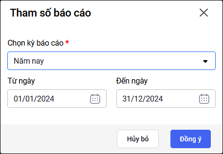 • Chọn khoảng thời gian in báo cáo: Từ ngày, Đến ngày