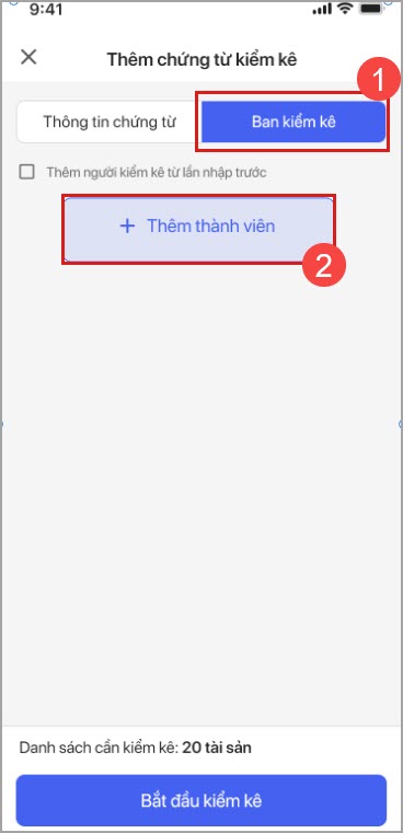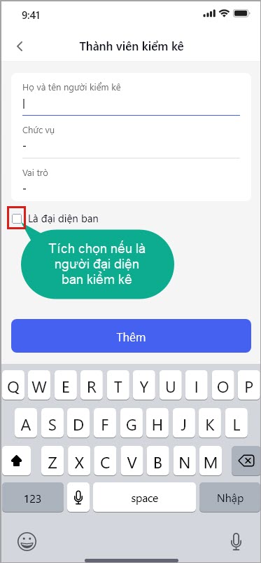 • Để thêm thành viên kiểm kê anh/chị chọn Thêm thành viên sau đó nhập thông tin người kiểm kê