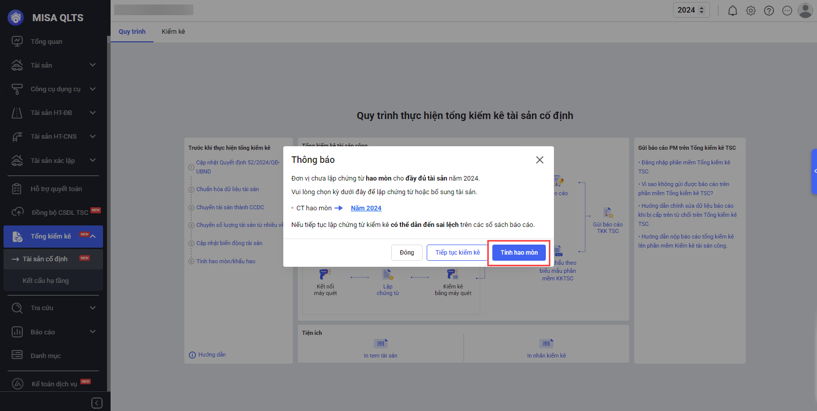 Lưu ý: Để đảm bảo số liệu chính xác trên sổ sách báo cáo, anh/chị cần lập chứng từ khấu hao (nếu có) và chứng từ hao mòn trước khi lập chứng từ tổng kiểm kê.