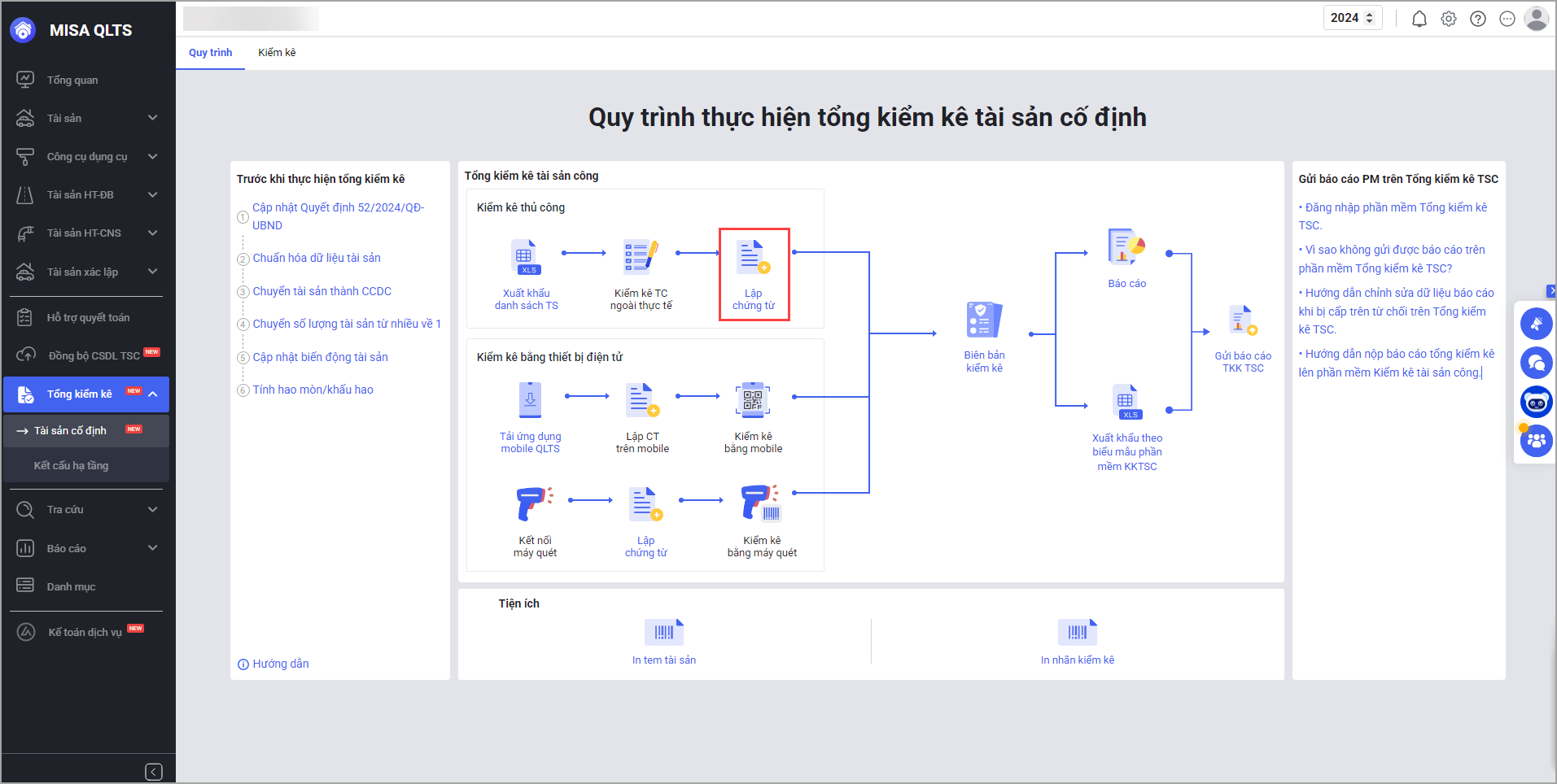 Bước 5: Lập chứng từ tổng kiểm kê tài sản cố định