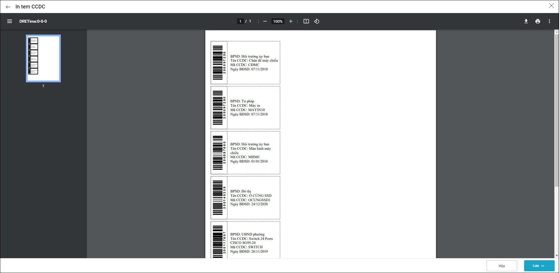 2. Chương trình sẽ in được tem CCDC như sau: