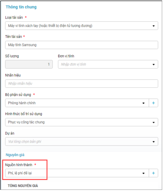 – Cập nhật thông tin về nguồn kinh phí cho tài sản và các chứng từ, báo cáo mới lập theo nguồn mới.