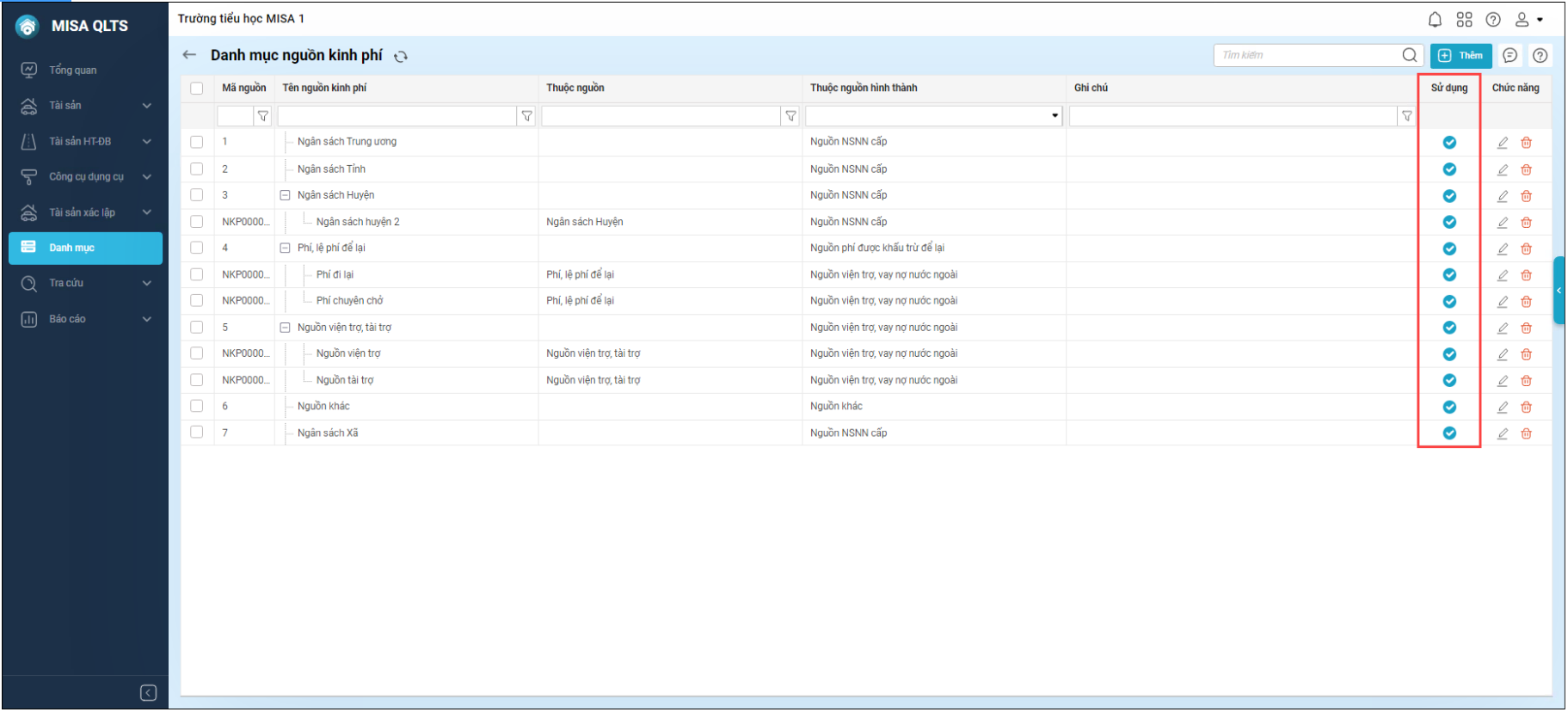 – Bổ sung thông tin tại Danh mục nguồn kinh phí.