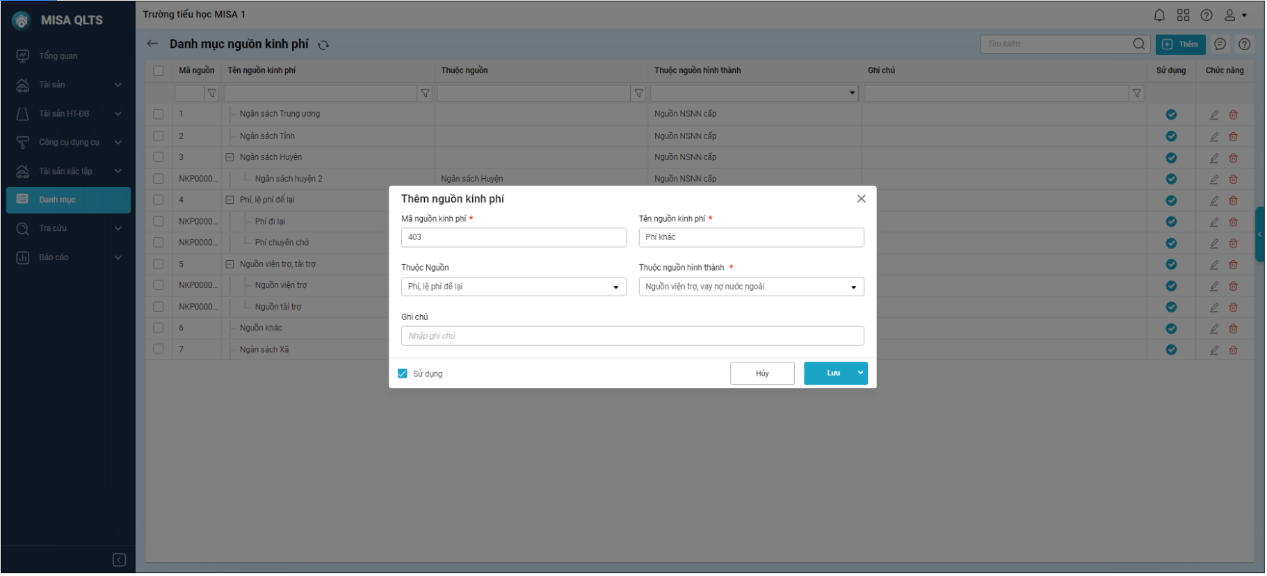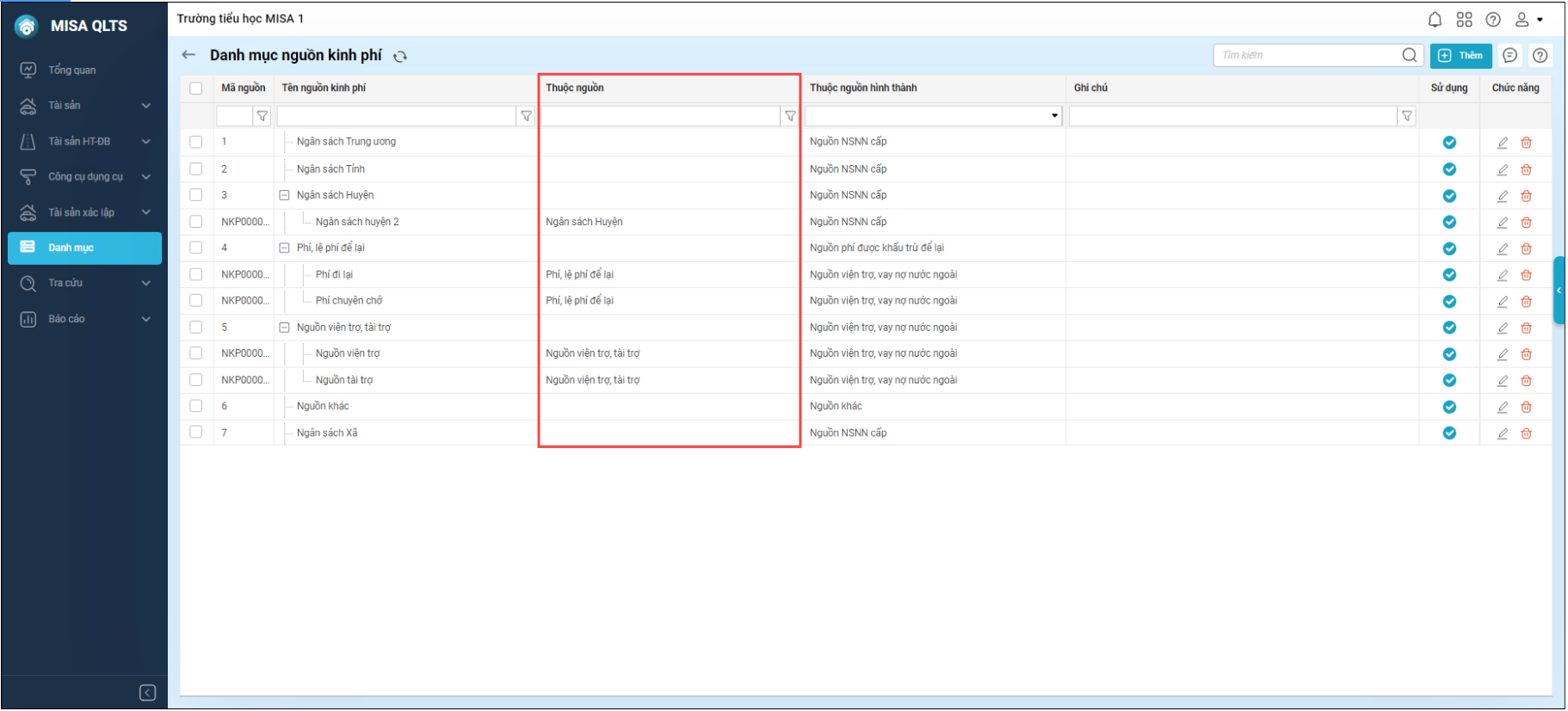 – Khi thêm nguồn vào danh mục nguồn kinh phí, bắt buộc khai báo thông tin “Thuộc nguồn hình thành”.