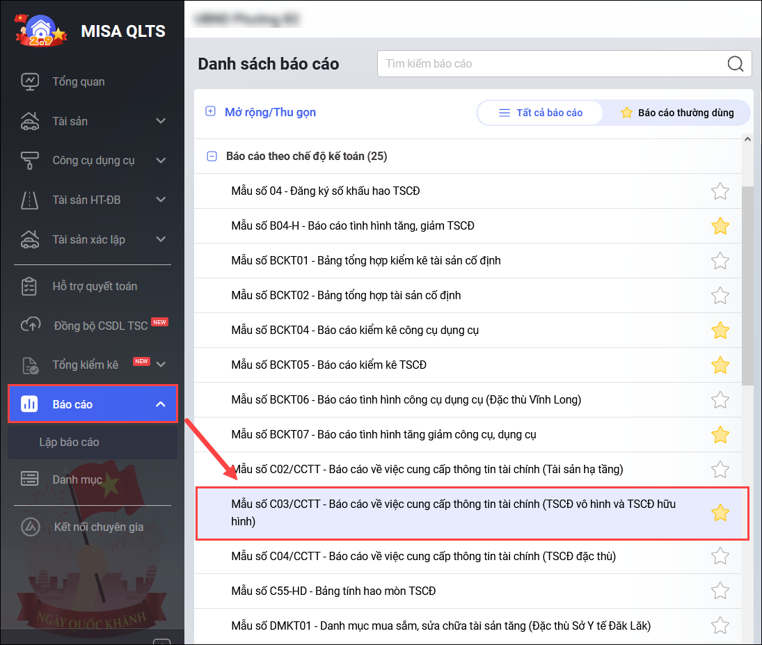 4. Kế toán muốn in biểu 03/CCTT nộp kèm báo cáo tài chính để nộp cho STC báo cáo thông tin tài sản theo mẫu mới TT39/2021/TT-BTC