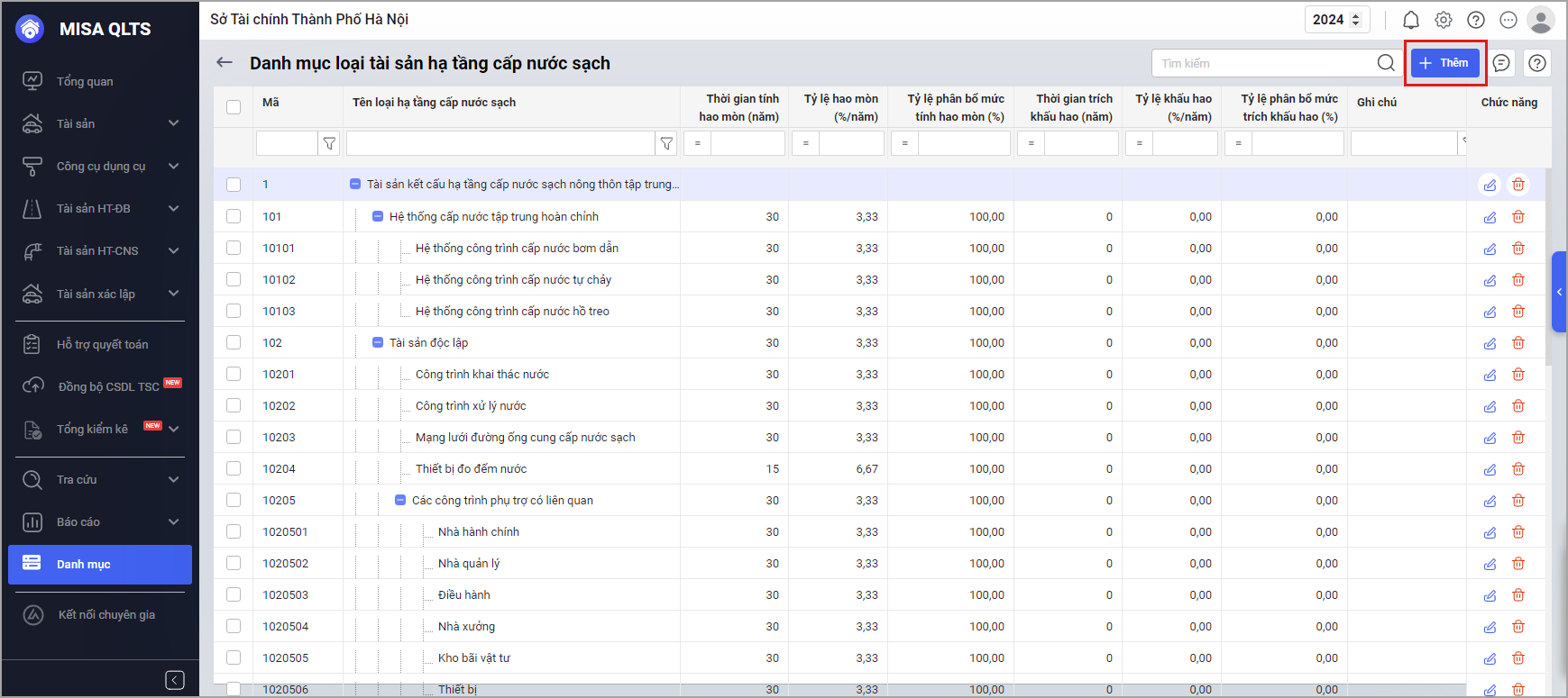• Nếu muốn khai báo thêm loại tài sản hạ tầng cấp nước sạch, anh/chị chọn Thêm