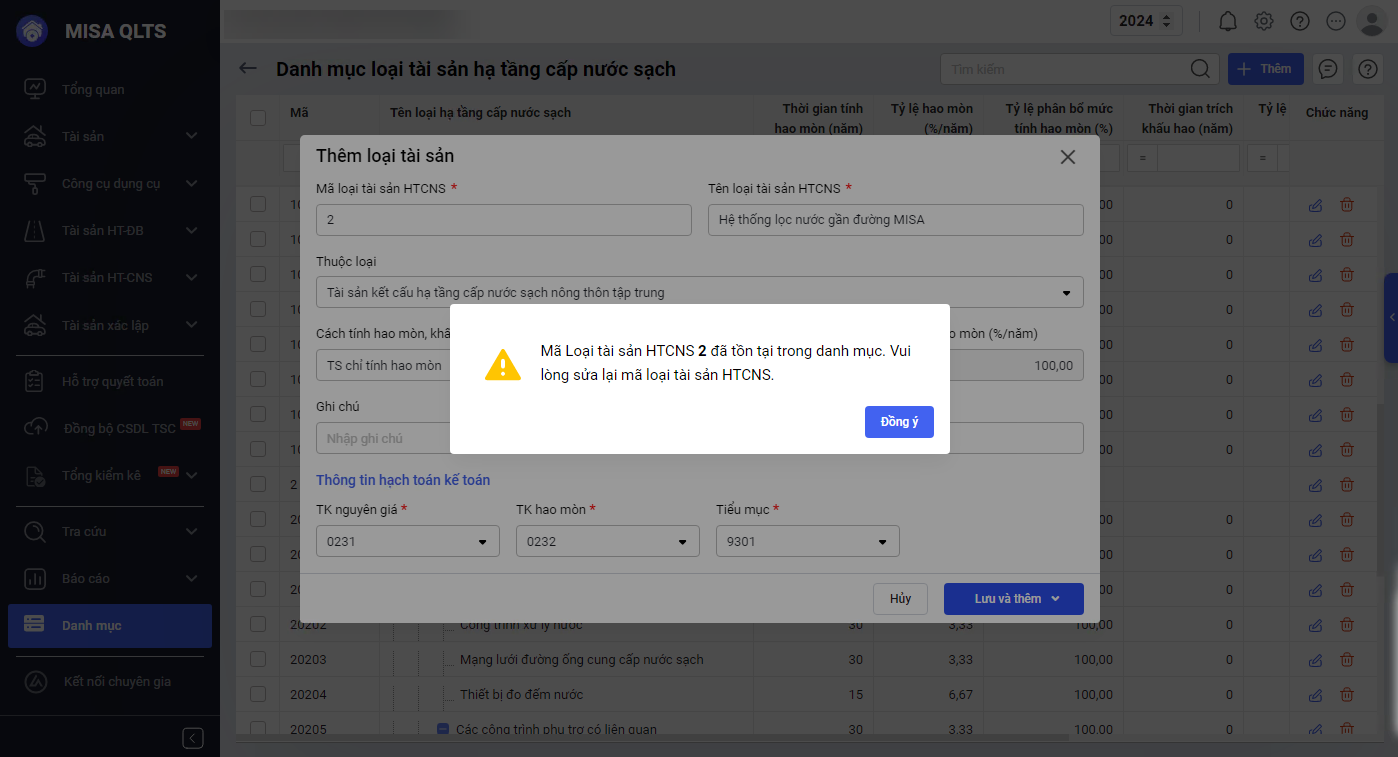 2. Khai báo danh mục loại tài sản kết cấu hạ tầng cấp nước sạch