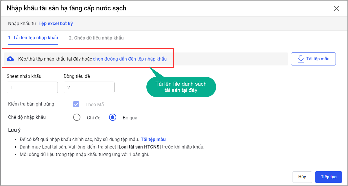 Bước 1. Tải lên tệp nhập khẩu