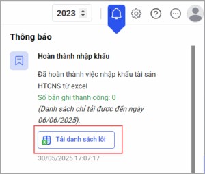 Bước 4. Sau khi nhập khẩu, phần mềm sẽ thông báo trạng thái nhập khẩu tài sản: