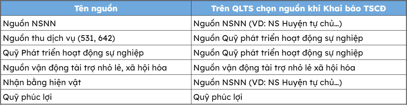• Lưu ý việc chọn nguồn hình thành TSCĐ trên QLTS