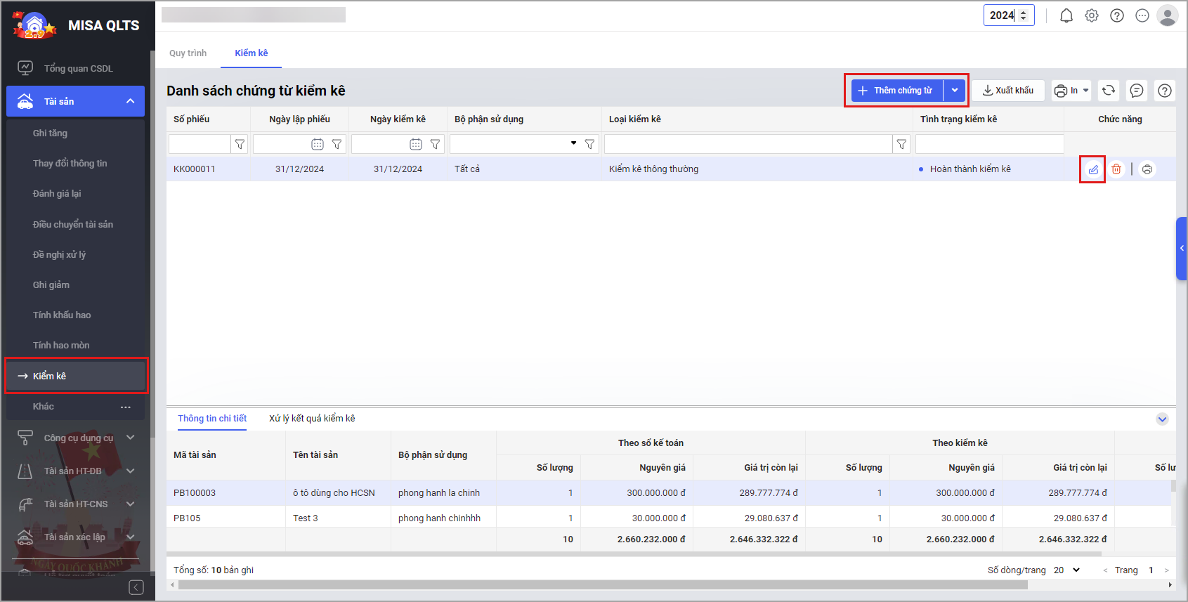 Sau khi lập chứng từ kiểm kê, cán bộ QLTS in báo cáo kiểm kê thì phát hiện thấy thiếu tài sản. Khi kiểm tra thì do tài sản đã phát sinh chứng từ sau ngày kiểm kê nên không thể lập chứng từ kiểm kê.