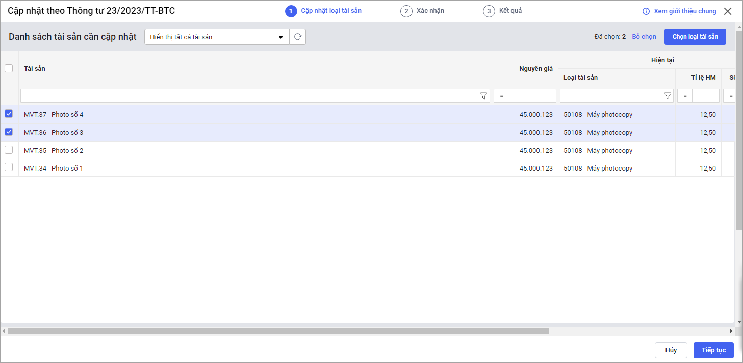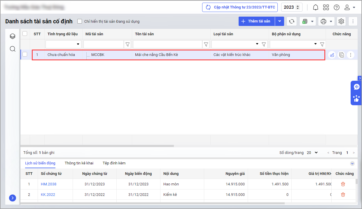 • Khi tích vào tài sản phần mềm sẽ mở đến màn hình Danh sách TSCĐ và điều hướng đến tài sản đó.